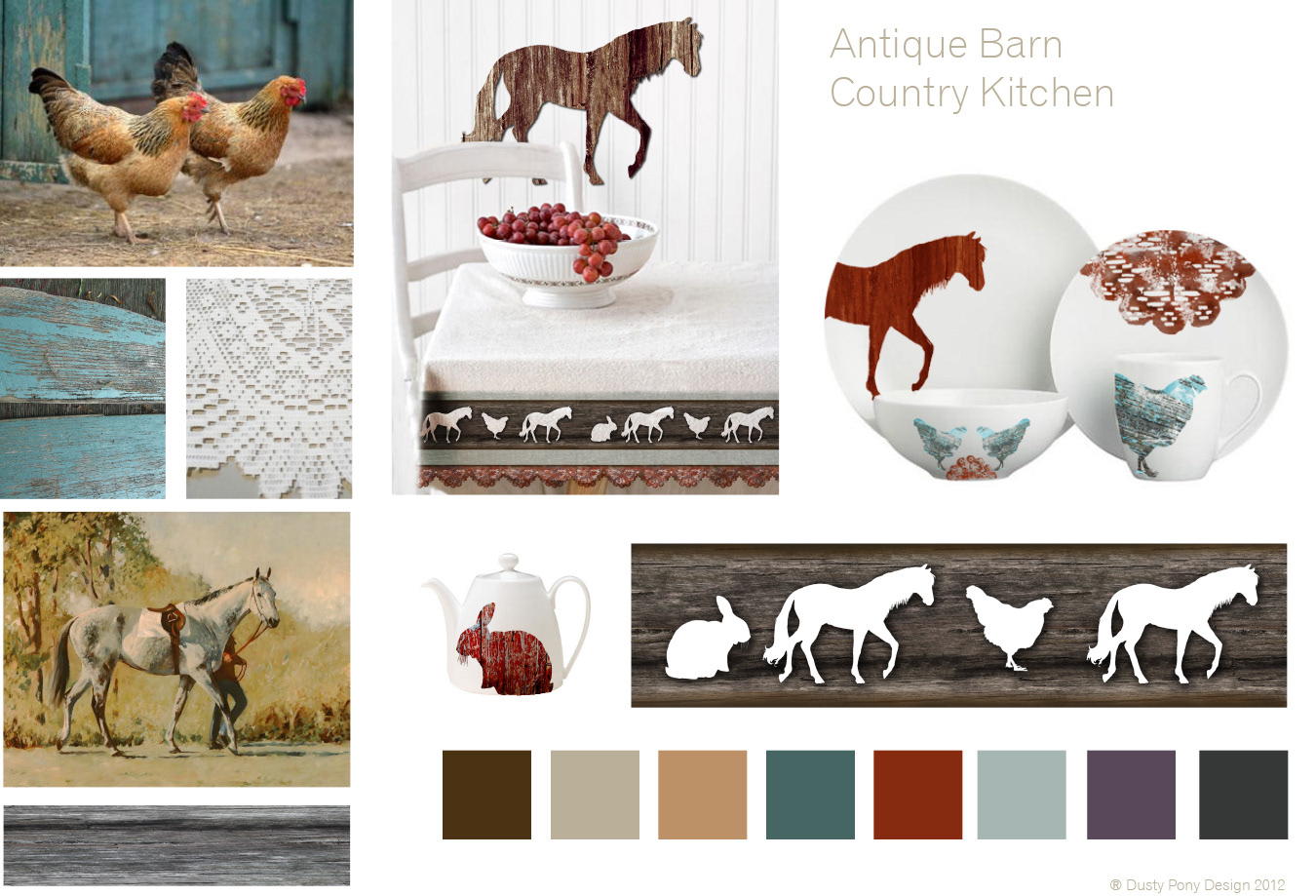 Inspiration, color palate and product mock ups for Antique Barn design.