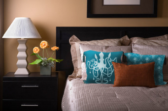 An unusual form creates a beautifully draped chandelier. Shown as possible applications for interior textiles.